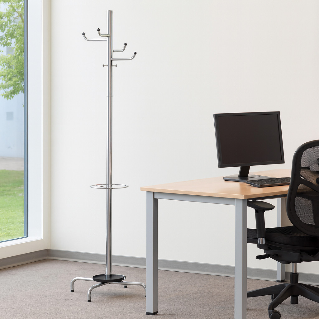 Chrómovaný vešiak na kabáty s držiakom na dáždnik