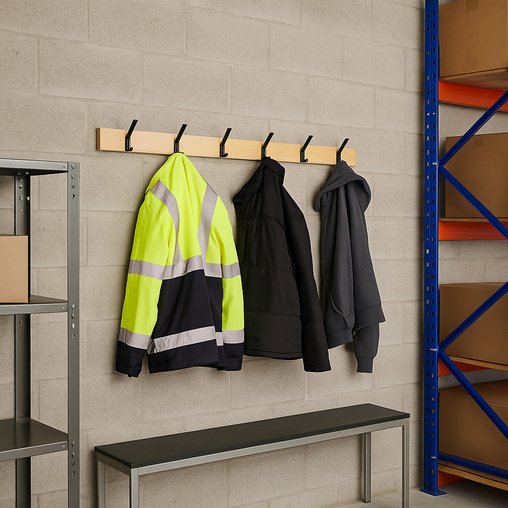 Univerzálny a praktický doplnok do každého priestoru. Tento nástenný vešiak so šiestimi háčikmi spája funkčnosť s prirodzenou eleganciou dreva. So šírkou 1500 mm ponúka dostatok priestoru na prehľadné odkladanie kabátov, búnd či tašiek. Rám z lakovaného prírodného ihličnanu I. triedy vyniká pevnosťou, dlhou životnosťou a hrejivým vzhľadom, ktorý zapadne do každého prostredia – od kancelárie a dielne až po sklad či domácnosť.