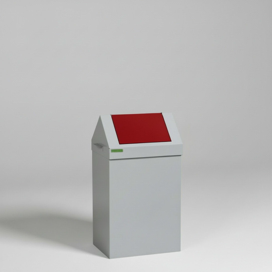Základné farebné prevedenie je červené, ktoré je ideálne napríklad na zvýraznenie konkrétneho typu odpadu. Na výber sú aj ďalšie voliteľné farby – modrá, zelená, červená a žltá – vďaka čomu si firma môže vytvoriť vlastný farebný systém triedenia odpadu. Konštrukcia koša je vyrobená z oceľového plechu I. triedy a povrchovo upravená odolným práškovým lakom. Základná farba korpusu je RAL 7035 (svetlosivá), ktorá pôsobí neutrálne a ľahko sa kombinuje s farebnými prvkami.