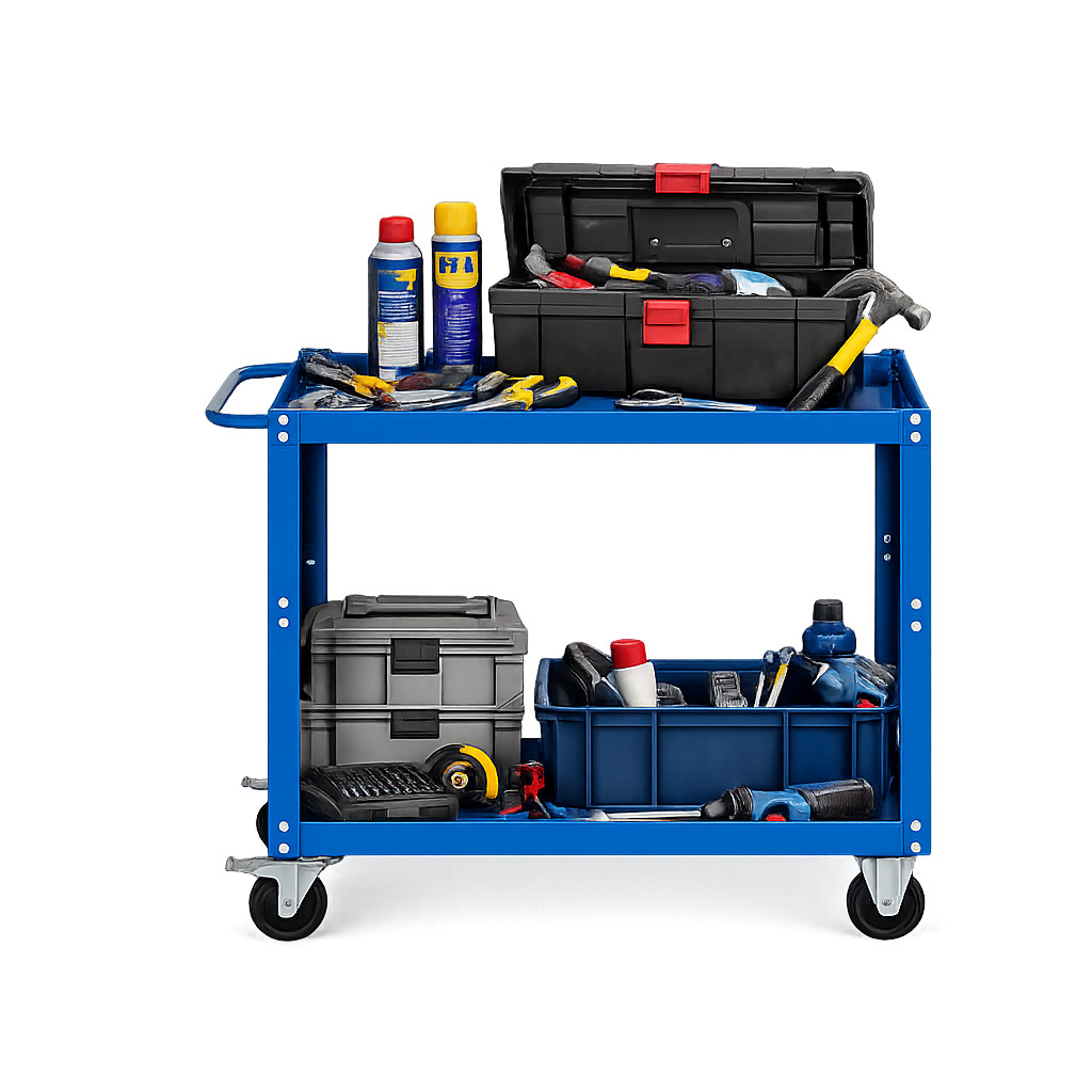 Ručný vozík s dvoma policami je praktickým riešením pre efektívnu manipuláciu s materiálom, náradím a zariadeniami v dielňach, skladoch aj priemyselných prevádzkach. Umožňuje pohodlné premiestňovanie viacerých predmetov naraz, čím šetrí čas aj fyzickú námahu pri každodennej práci.