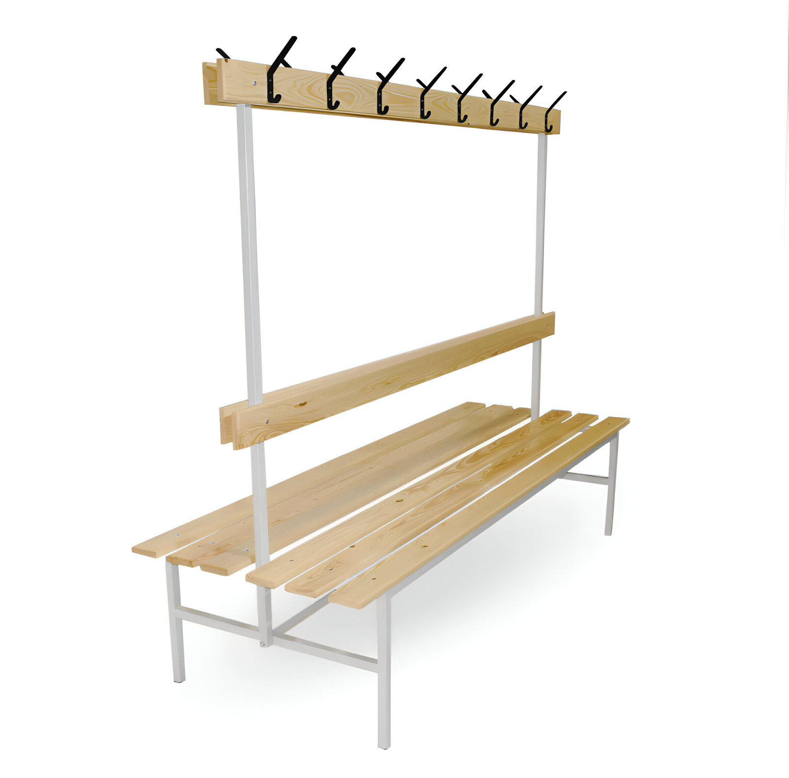 Obojstranná šatníková lavica s opierkou, vešiakmi a dĺžkou 2000 mm