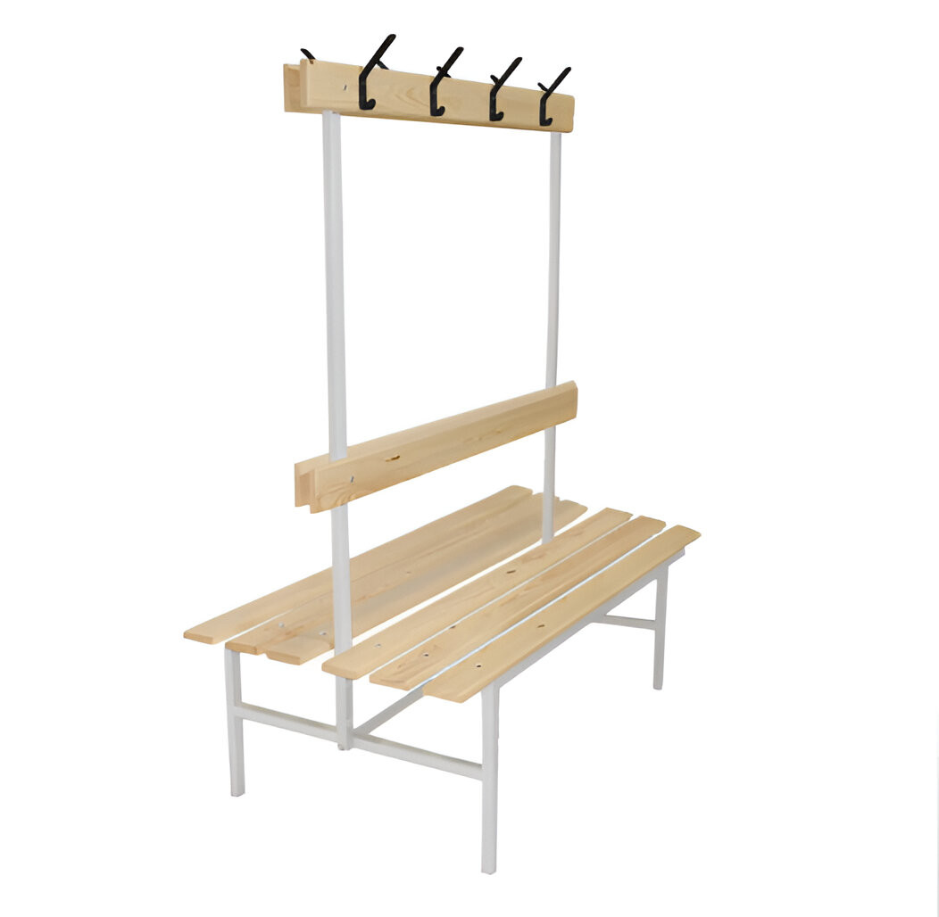 Obojstranná šatníková lavica s opierkou, vešiakmi a dĺžkou 1000 mm