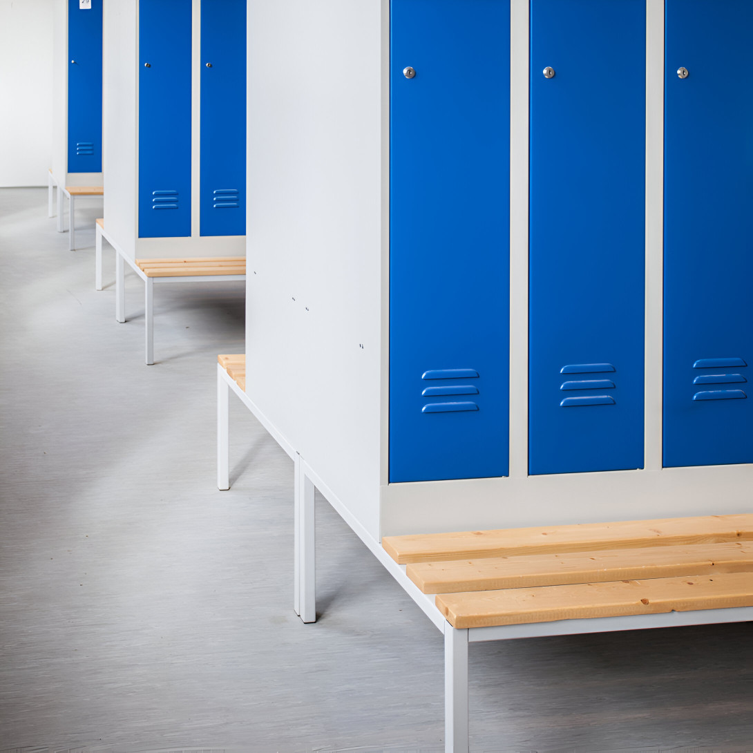 Zabudované lavice predstavujú praktické riešenie z hľadiska hygieny aj udržiavania poriadku. Poskytujú zamestnancom pohodlné miesto na sedenie a dostatok priestoru na prezliekanie, pričom uľahčujú upratovanie pod skriňami. Voliteľná polica na obuv navyše umožňuje systematické a prehľadné ukladanie topánok. Ak hľadáte ďalšie možnosti, odporúčame pozrieť si našu ponuku doplnkov, ktoré zvyšujú komfort používania a podčiarkujú estetiku skríň.