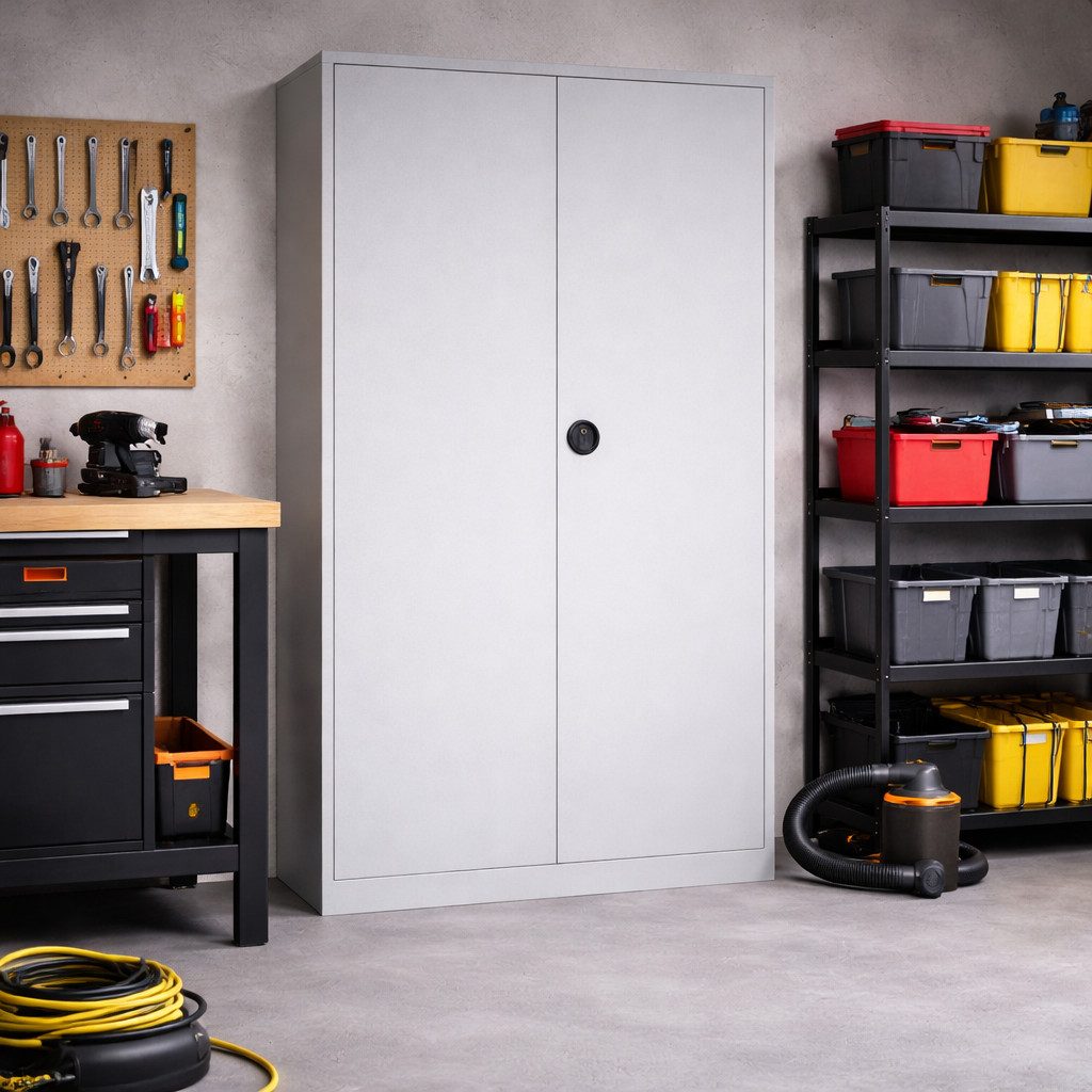 Skladovacia skriňa STORECAB H 1945/1000/420 GY s klasickým a nadčasovým dizajnom predstavuje spoľahlivé riešenie pre bezpečné uloženie dokumentov, šanónov, archívnych krabíc aj pracovného materiálu, ale aj náradia do dielne. Vďaka univerzálnemu vyhotoveniu je vhodná do kancelárií, archívov, administratívnych priestorov, ale aj do dielní či skladov, kde je potrebné mať veci prehľadne usporiadané a chránené.