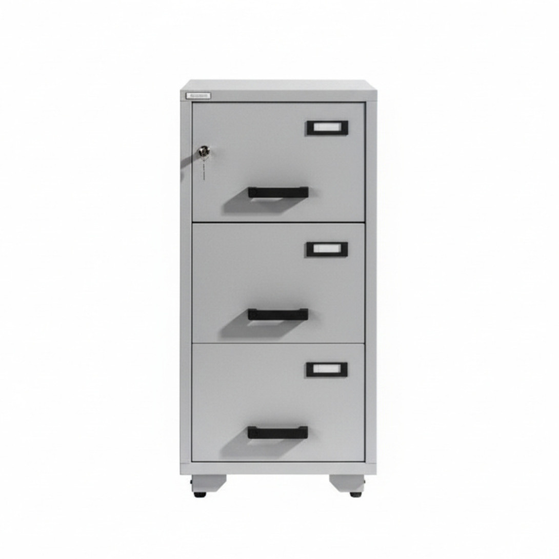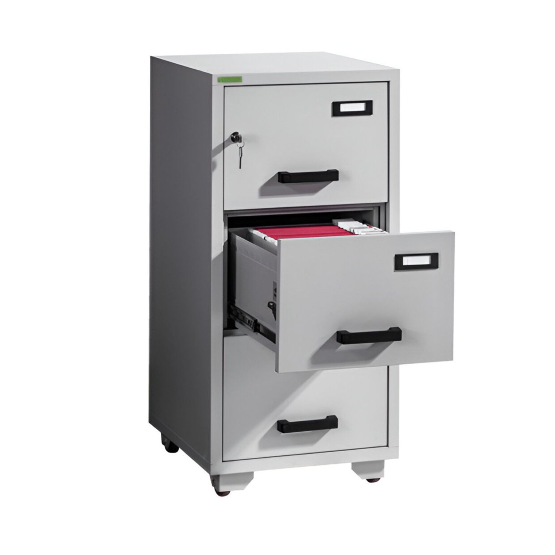 Protipožiarna kancelárska skriňa FIRE FILE 3 s tromi zásuvkami kombinuje funkčnosť, odolnosť a moderné prevedenie. Vyhotovená je vo farbe RAL 7035 (svetlosivá) s kvalitnou povrchovou úpravou práškovým lakom. Skriňa má hmotnosť 150 kg a zásuvky s nosnosťou 50 kg poskytujú dostatok priestoru pre dokumenty.