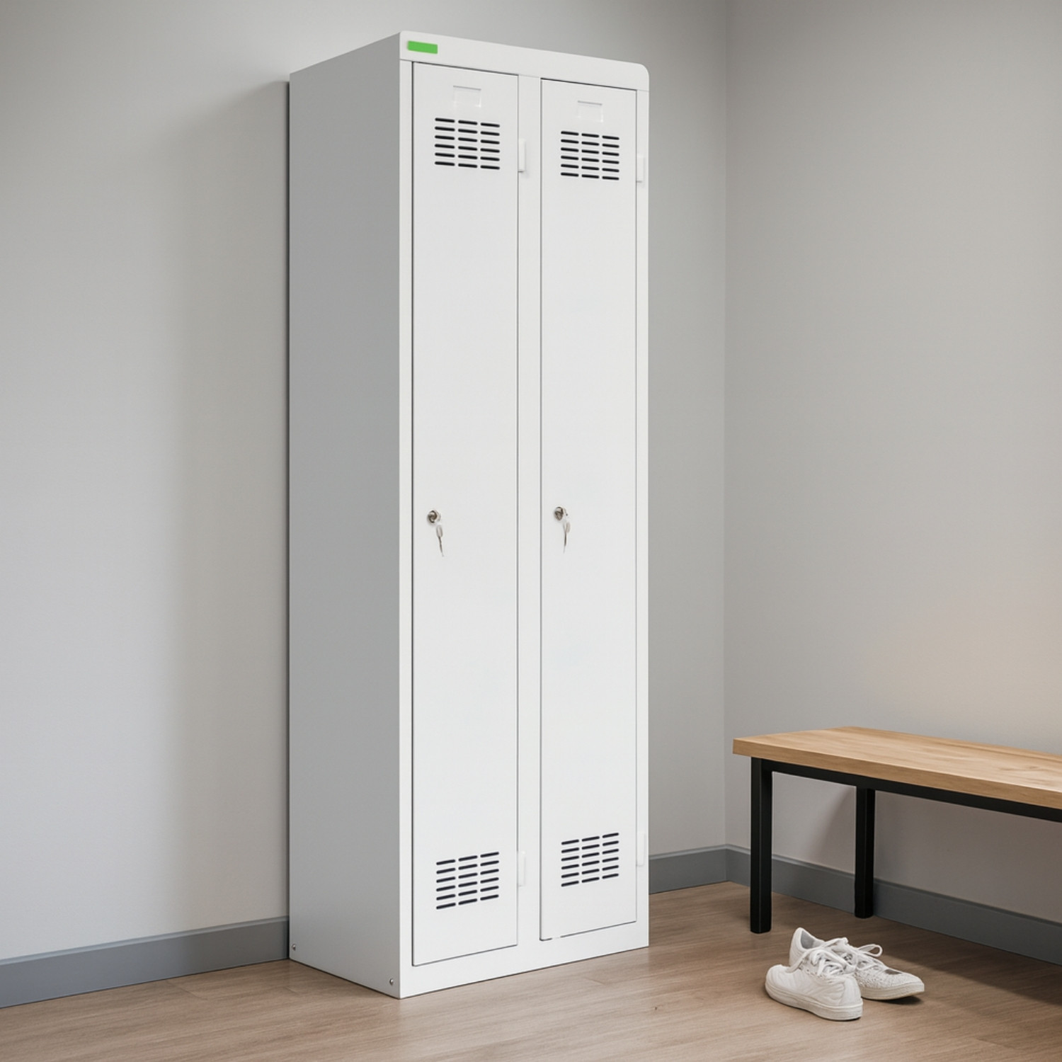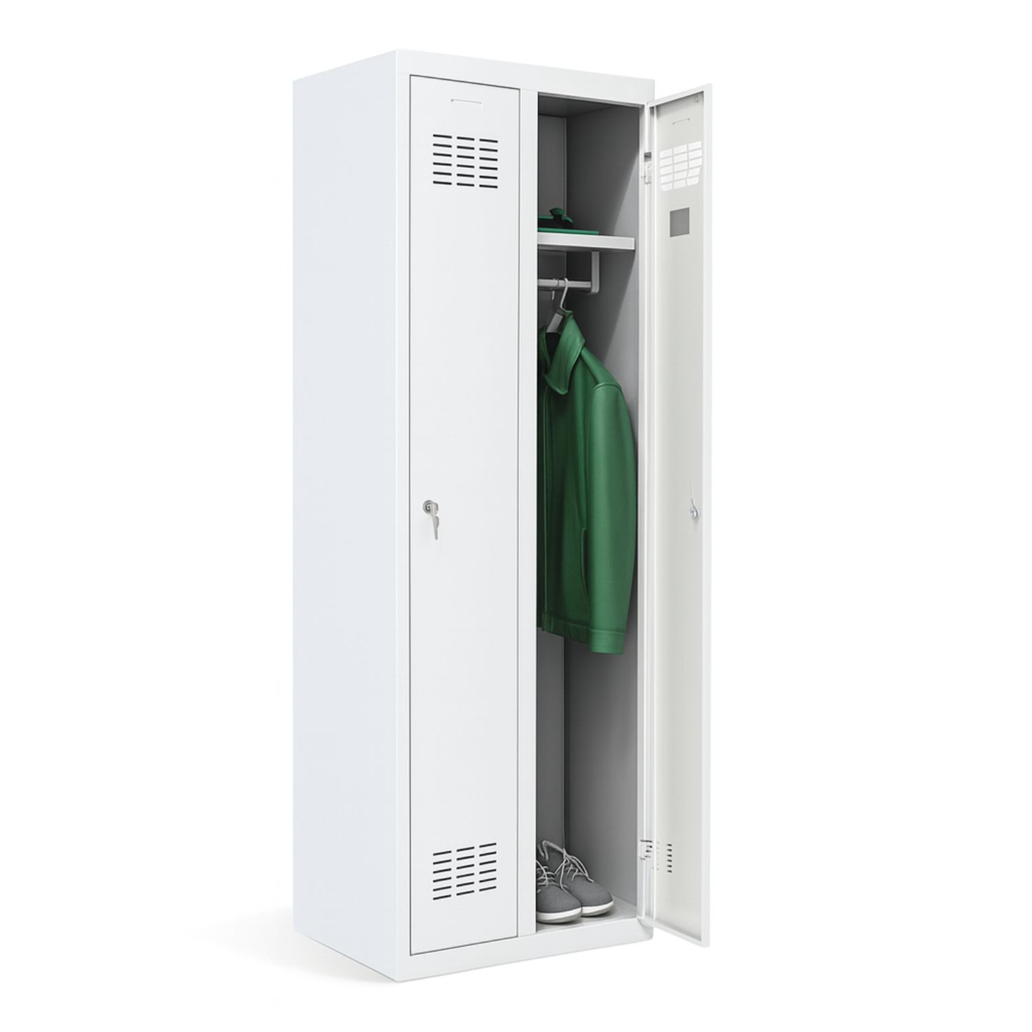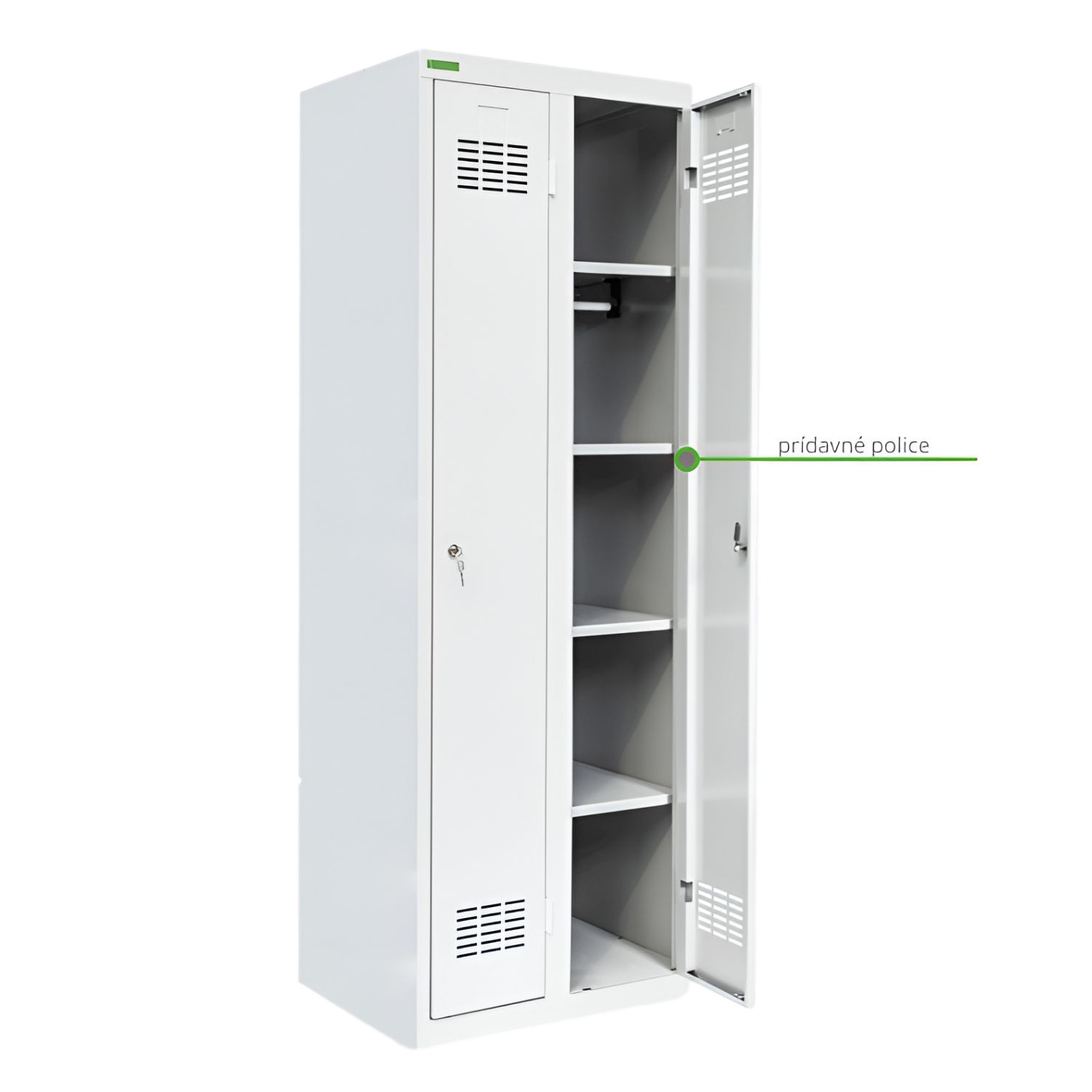Dvojdverová šatníková skriňa s dlhými dverami patrí medzi naše najpredávanejšie modely. Vďaka svojmu univerzálnemu dizajnu sa ľahko začlení do akejkoľvek šatne, či už ide o školu, firmu alebo športové zariadenie. Zároveň ju môžete prispôsobiť svojim požiadavkám doplnením voliteľného príslušenstva. Robustné a kvalitné prevedenie garantuje dlhú životnosť, takže ide o investíciu, ktorá sa vám v prevádzke skutočne oplatí.