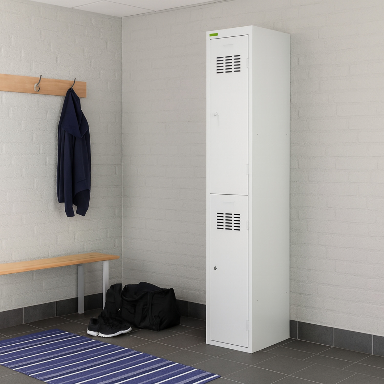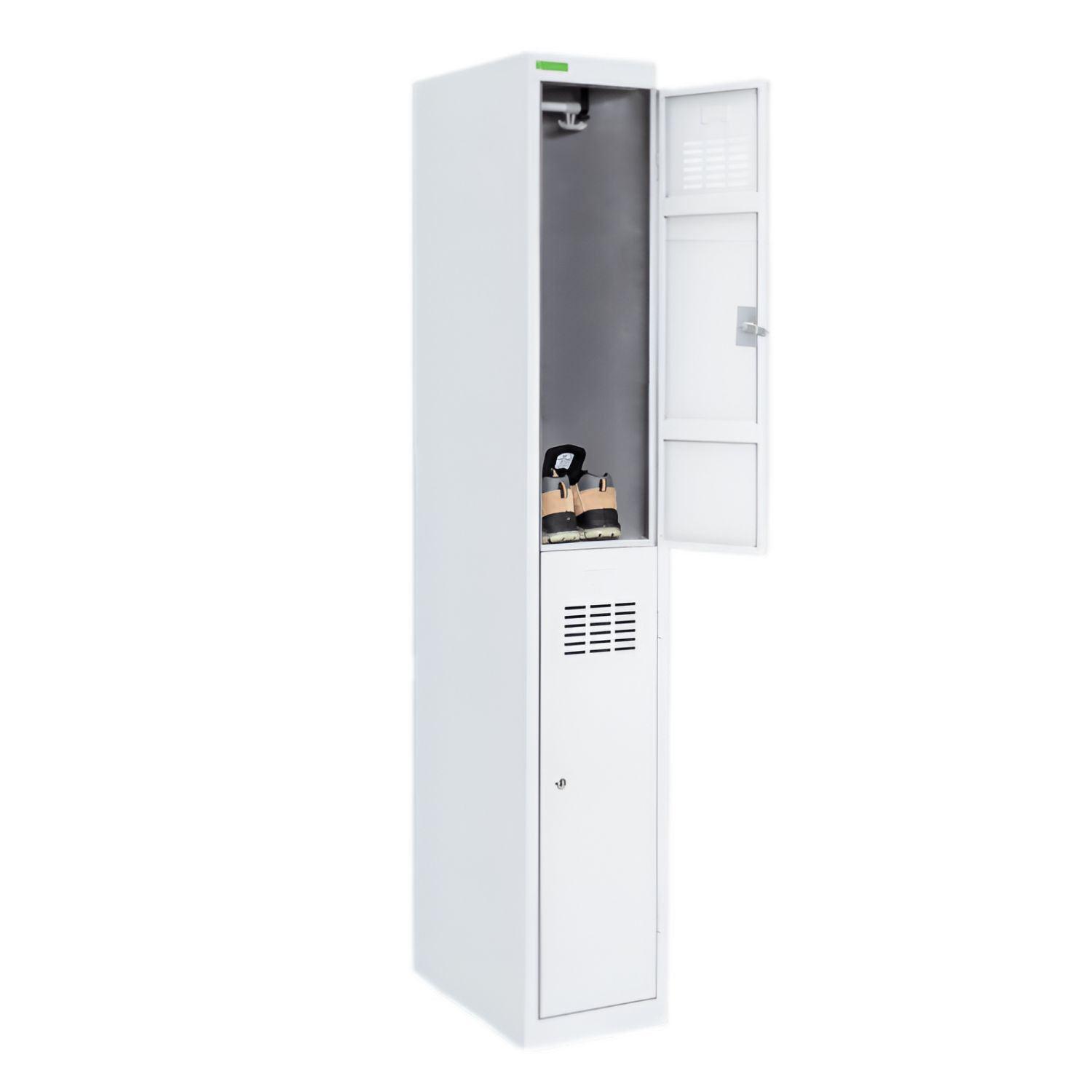 2-dverová šatňová skriňa s krátkymi dvierkami je praktické a spoľahlivé riešenie pre školské šatne, firemné priestory či športové zariadenia, kde je potrebné efektívne využitie priestoru. Vďaka kompaktnej konštrukcii ponúka dostatok úložného miesta pre osobné veci používateľov, pričom zachováva prehľadnosť a jednoduchý prístup. Krátke dvierka umožňujú lepšie rozdelenie úložného priestoru v rámci jednej skrine, čo je ideálne najmä v prevádzkach s vyššou frekvenciou používania.