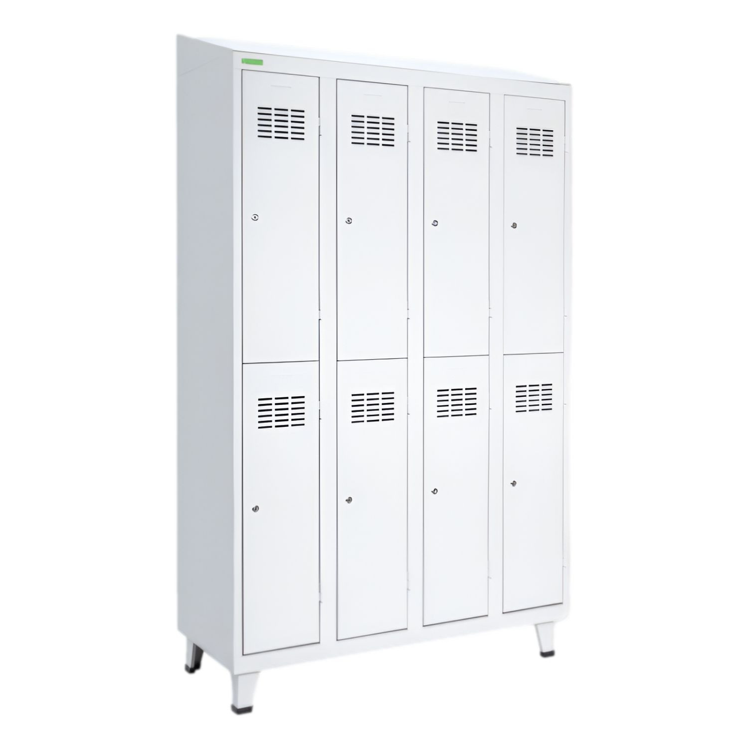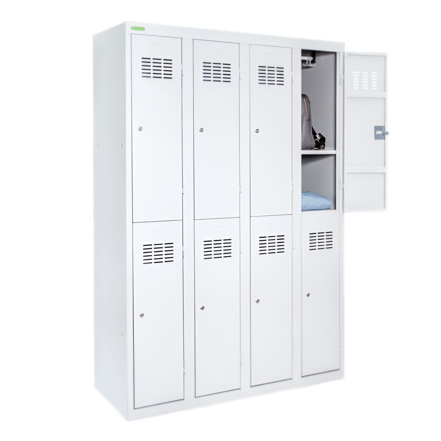 Ak máte vo vašej šatni dostatok priestoru a potrebujete zabezpečiť úložné kapacity pre väčší počet používateľov, tento model, LOCKER H 4/8 s ôsmimi dvierkami, je ideálnou voľbou. Každá priehradka poskytuje samostatný uzamykateľný priestor, čo zabezpečuje poriadok, hygienu a jednoduchú organizáciu.