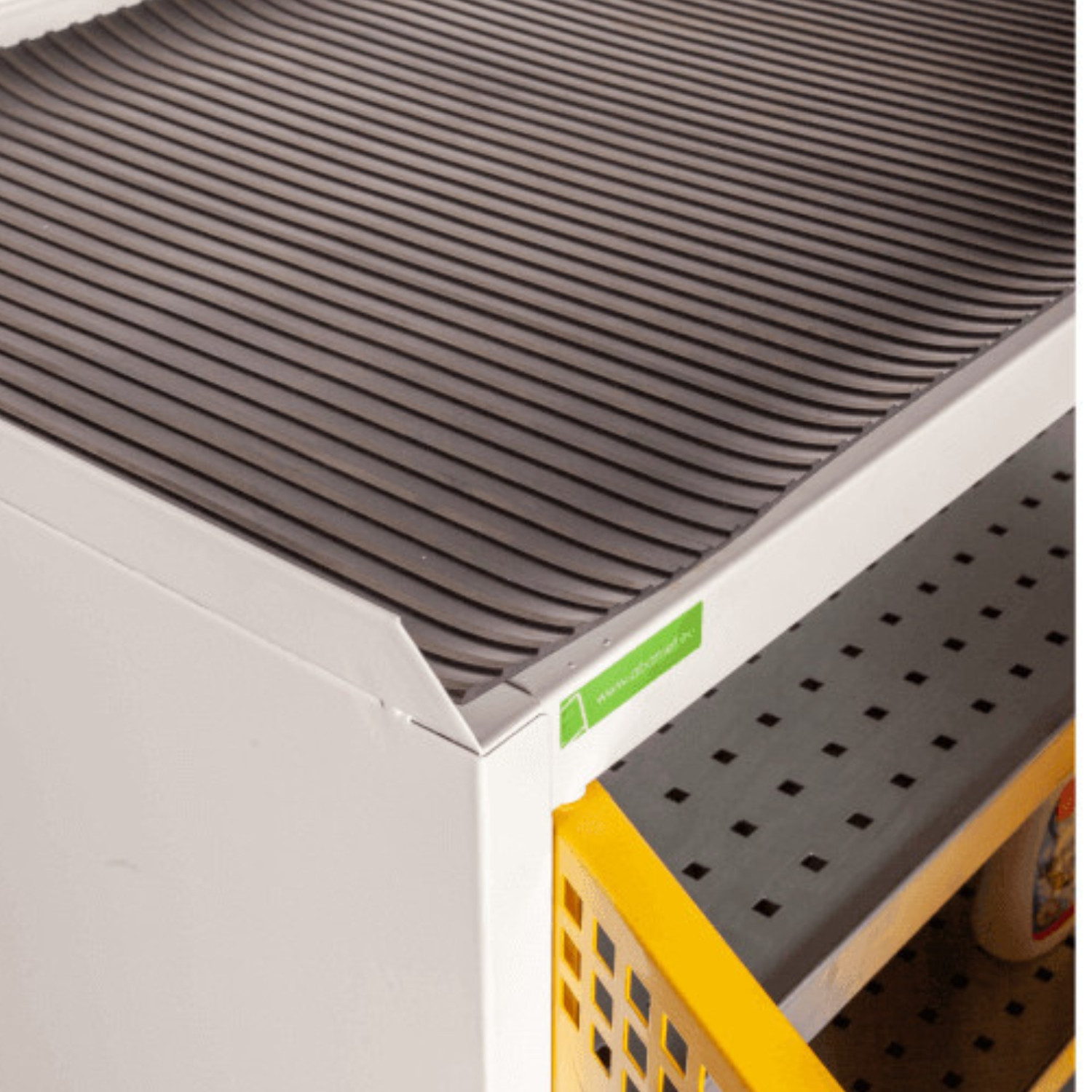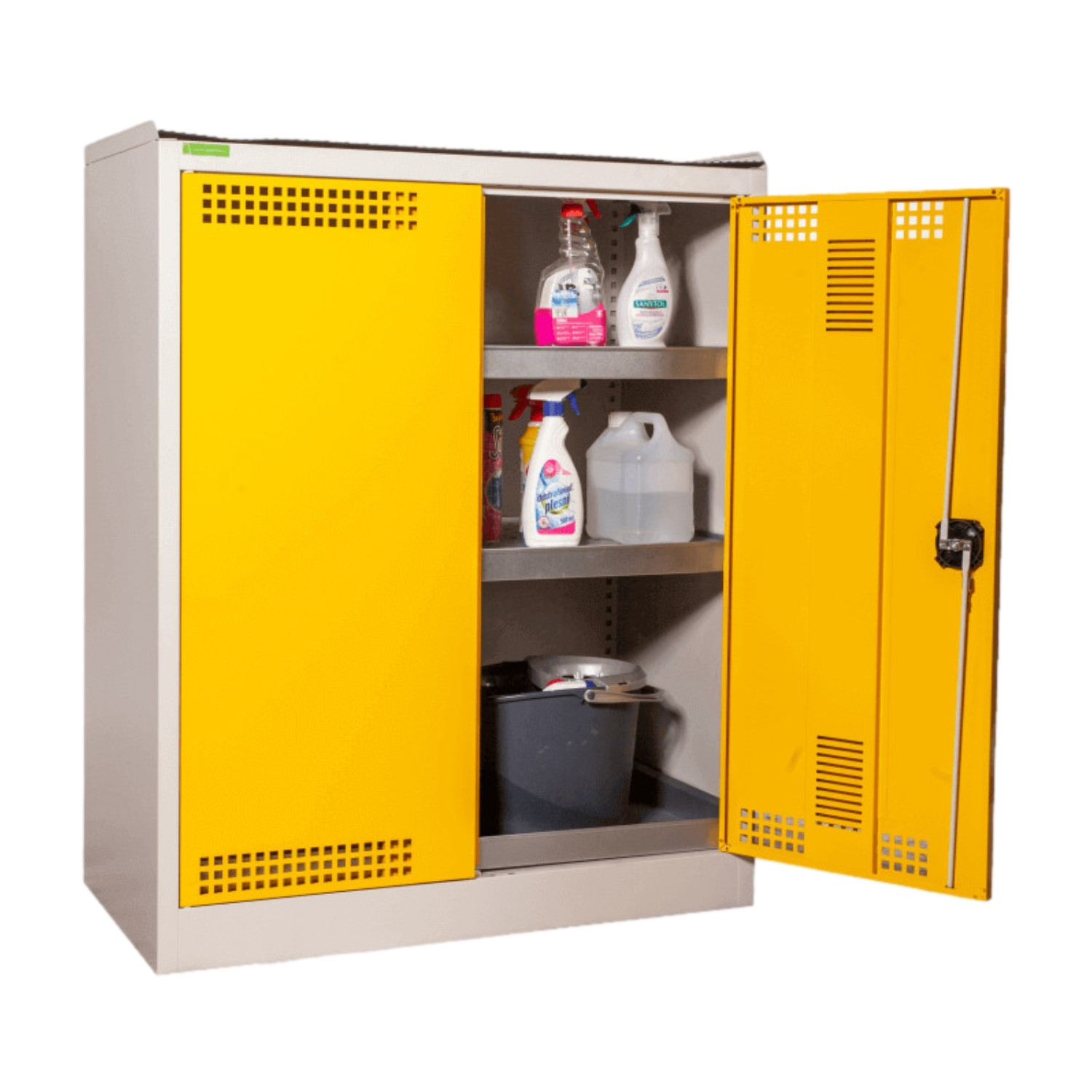 Séria skríň na chemikálie CHEMICAB spája výrazný dizajn so splnením všetkých predpisov pre bezpečné skladovanie chemikálií, farieb a jedov. Každá skriňa je vybavená dvomi pozinkovanými odkvapkávacími policami s perforovaným roštom (19 l) a jednou pozinkovanou spodnou vaňou bez roštu (20 l). Všetky vaničky sú ošetrené povrchovou úpravou odolnou voči kyselinám a stabilne uchytené v konštrukcii. Nosnosť políc je 60 kg.