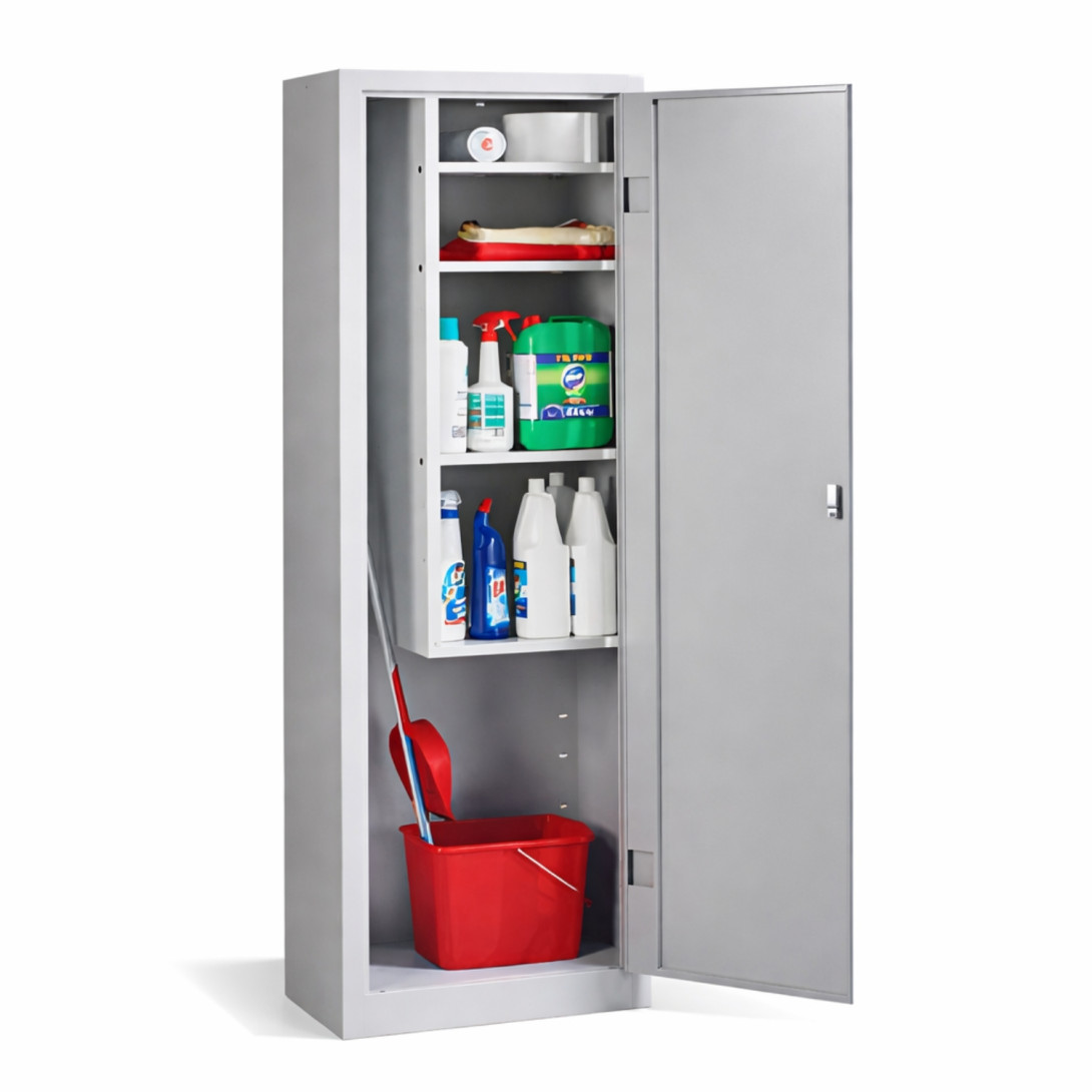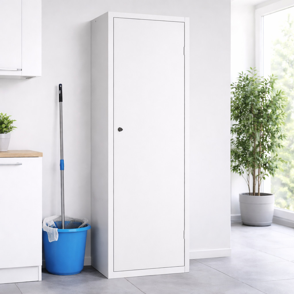 Úzka skriňa pre upratovací personál je praktickým riešením pre prehľadné uloženie všetkých čistiacich prostriedkov a pomôcok na jednom mieste. Konštruovaná je s dôrazom na efektívne využitie priestoru, takže sa bez problémov zmestí aj do menších či úzkych miestností.
