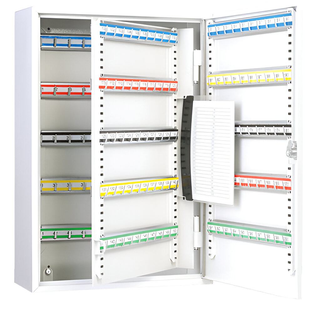 Máte doma alebo vo firme kľúče, pri ktorých netušíte, ku ktorým zámkom patria? Alebo strávite priveľa času ich hľadaním? Riešením je praktická skriňa na kľúče, ktorá vám pomôže udržať poriadok a prehľad. Vďaka očíslovaným farebným lištám s nastaviteľnou výškou a dokumentácii budete mať vždy jasno, ktorý kľúč kam patrí. Skriňa je vybavená nastaviteľnými lištami s pozinkovanými háčikmi, cylindrickým bezpečnostným zámkom s dvomi kľúčmi a dá sa jednoducho zavesiť na stenu. Robustné prevedenie z oceľového plechu I. triedy, povrchová úprava kvalitným práškovým lakom a elegantná signálne biela farba RAL 9002 z nej robia nielen funkčného, ale aj estetického pomocníka. Kompaktné rozmery 380 × 550 × 140 mm zaručujú, že si nájde miesto v každej kancelárii či domácnosti. Produkt Vám nevyhovuje? Pozrite si našu ponuku skriniek na kľúče.