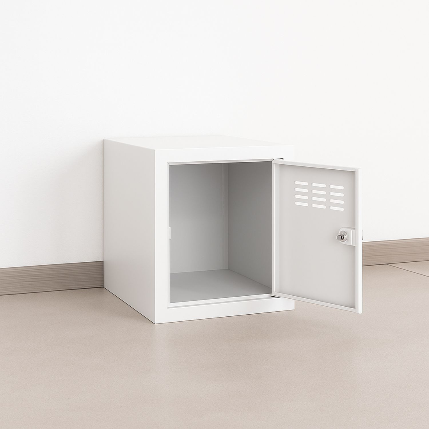 Malé skrinky na obuv sú praktickým riešením pre školy, výrobné prevádzky či iné miesta, kde je potrebné prezúvanie. Vďaka svojim kompaktným rozmerom nezaberajú veľa miesta, no zároveň poskytujú dostatok priestoru na uloženie obuvi. Vyhotovené sú v odolnej svetlosivej farbe RAL 7035 s povrchovou úpravou práškovým lakom, čo zabezpečuje ich dlhú životnosť a odolnosť voči každodennému používaniu. Na dvierkach sa nachádzajú otvory na vetranie, ktoré zaisťujú cirkuláciu vzduchu a bránia nepríjemnému zápachu. Skrinky je možné kombinovať s inými skriňami rovnakej šírky, čo umožňuje vytvárať praktické zostavy podľa potrieb priestoru. Výnimočnosť týchto skriniek spočíva aj v možnostiach uzamykania – za príplatok je možné vybaviť ich uzávermi na visiaci zámok, zámkami s mechanickým alebo elektronickým kódom, zámkami na mince alebo karty. Pre ešte väčší komfort je k dispozícii aj tácka na obuv, ktorá chráni vnútro skrinky pred znečistením. Tieto malé skrinky na obuv tak ponúkajú nielen funkčné, ale aj estetické riešenie, ktoré prináša poriadok, hygienu a flexibilitu do každého prostredia.