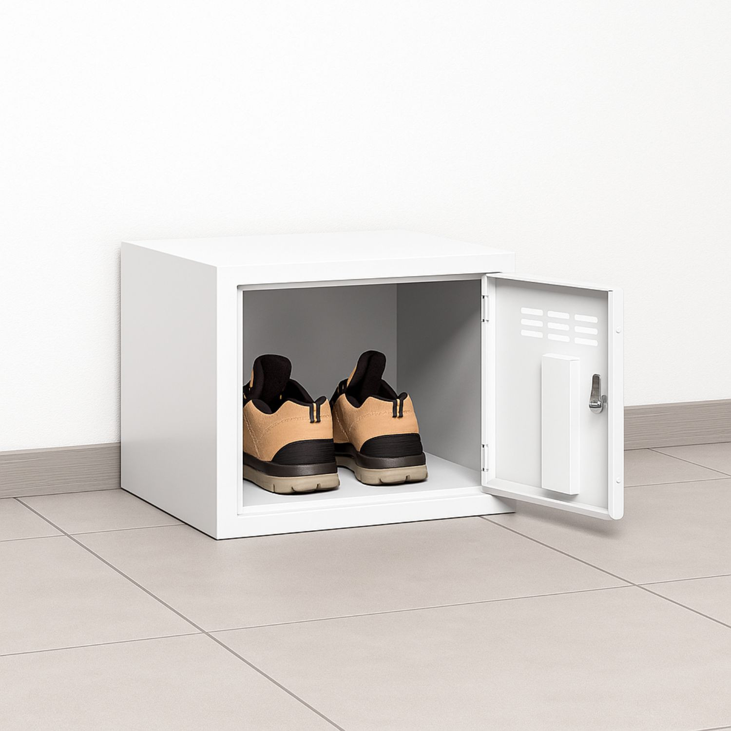Malé skrinky na obuv sú praktickým riešením pre školy, výrobné prevádzky či iné miesta, kde je potrebné prezúvanie. Vďaka svojim kompaktným rozmerom nezaberajú veľa miesta, no zároveň poskytujú dostatok priestoru na uloženie obuvi. Vyhotovené sú v odolnej svetlosivej farbe RAL 7035 s povrchovou úpravou práškovým lakom, čo zabezpečuje ich dlhú životnosť a odolnosť voči každodennému používaniu. Na dvierkach sa nachádzajú otvory na vetranie, ktoré zaisťujú cirkuláciu vzduchu a bránia nepríjemnému zápachu. Skrinky je možné kombinovať s inými skriňami rovnakej šírky, čo umožňuje vytvárať praktické zostavy podľa potrieb priestoru. Výnimočnosť týchto skriniek spočíva aj v možnostiach uzamykania – za príplatok je možné vybaviť ich uzávermi na visiaci zámok, zámkami s mechanickým alebo elektronickým kódom, zámkami na mince alebo karty. Pre ešte väčší komfort je k dispozícii aj tácka na obuv, ktorá chráni vnútro skrinky pred znečistením. Tieto malé skrinky na obuv tak ponúkajú nielen funkčné, ale aj estetické riešenie, ktoré prináša poriadok, hygienu a flexibilitu do každého prostredia.