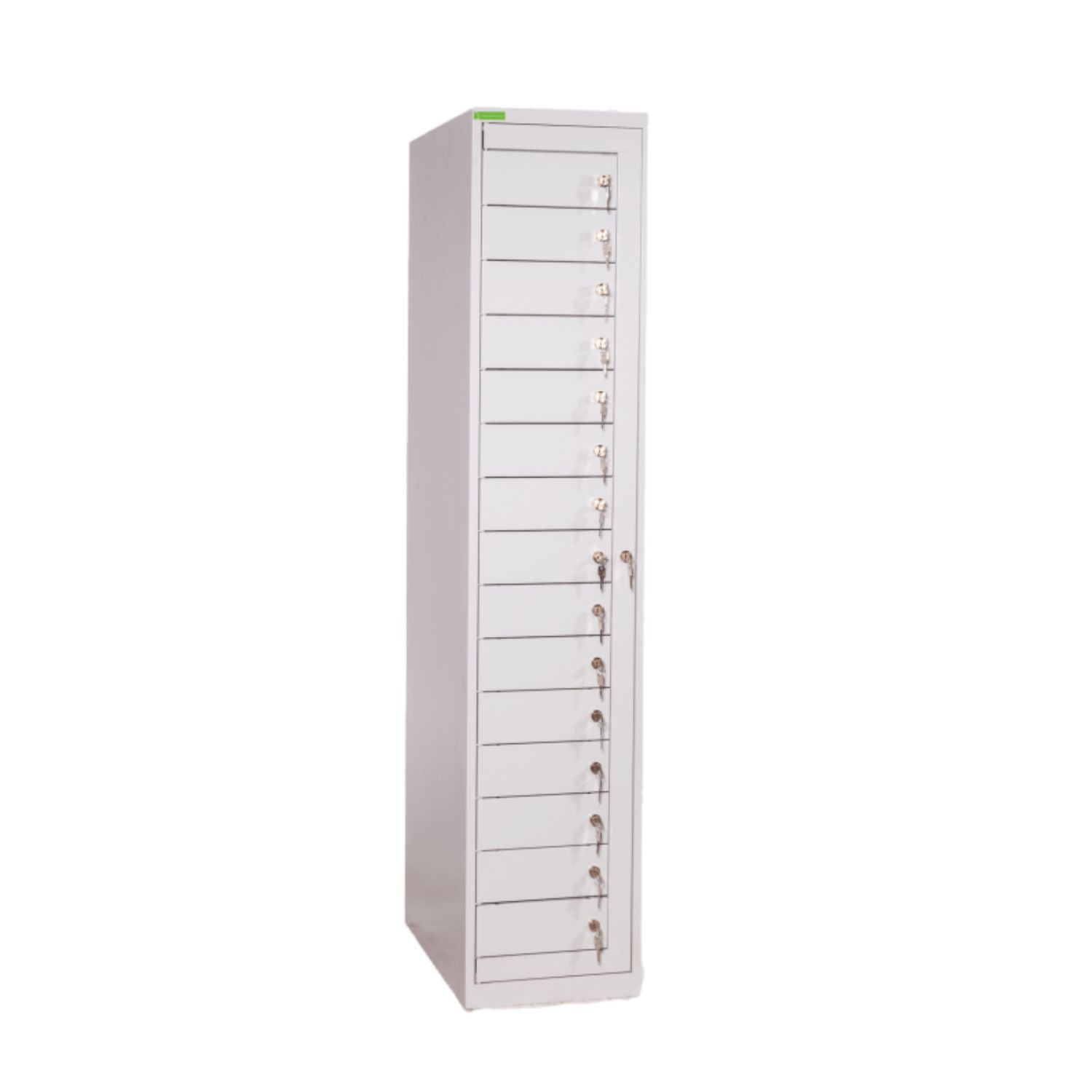 Skrinka LAUNDRYCAB H 1/15 je určená na výdaj čistých pracovných odevov v prevádzkach, kde sa používa väčšie množstvo pracovného oblečenia. Obsahuje 15 samostatných priehradiek, pričom každá je vybavená cylindrickým zámkom s 2 kľúčmi. Zamestnanci tak majú prístup výlučne do svojej priehradky. Celý systém je navrhnutý tak, aby ho mohla obsluhovať jedna zodpovedná osoba s jediným kľúčom pre centrálny prístup.