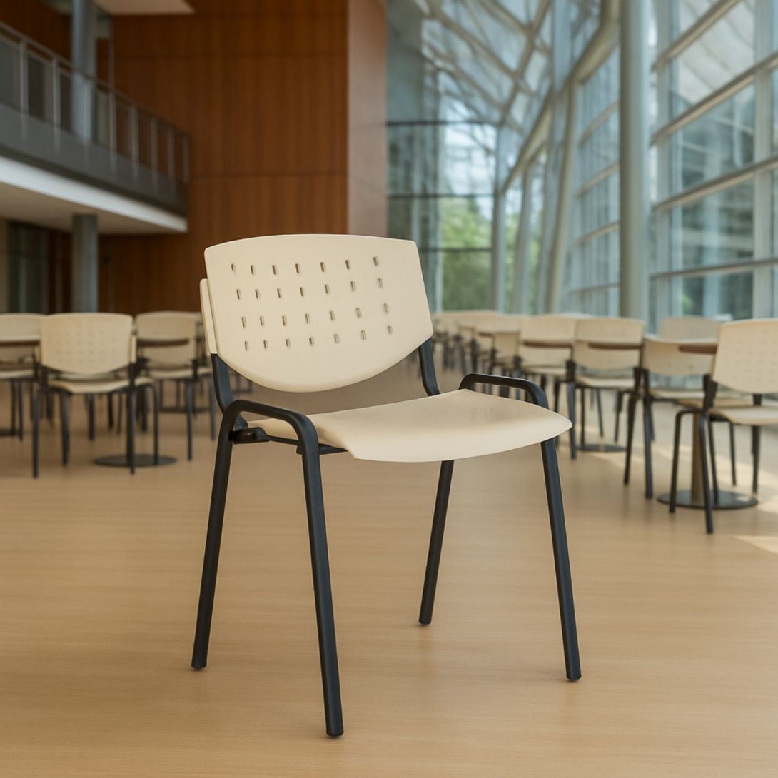 Stohovateľná plastová stolička EATSEAT BA BG je univerzálnym a praktickým riešením pre domácu aj firemnú jedáleň či menšiu kuchynku. Je navrhnutá tak, aby poskytovala pohodlie pri každodennom používaní a zároveň šetrila priestor, keď ju práve nepotrebujete. Pevná čierna konštrukcia v kombinácii s ergonomicky tvarovaným plastovým sedákom zaručuje stabilitu, komfort a dlhú životnosť.