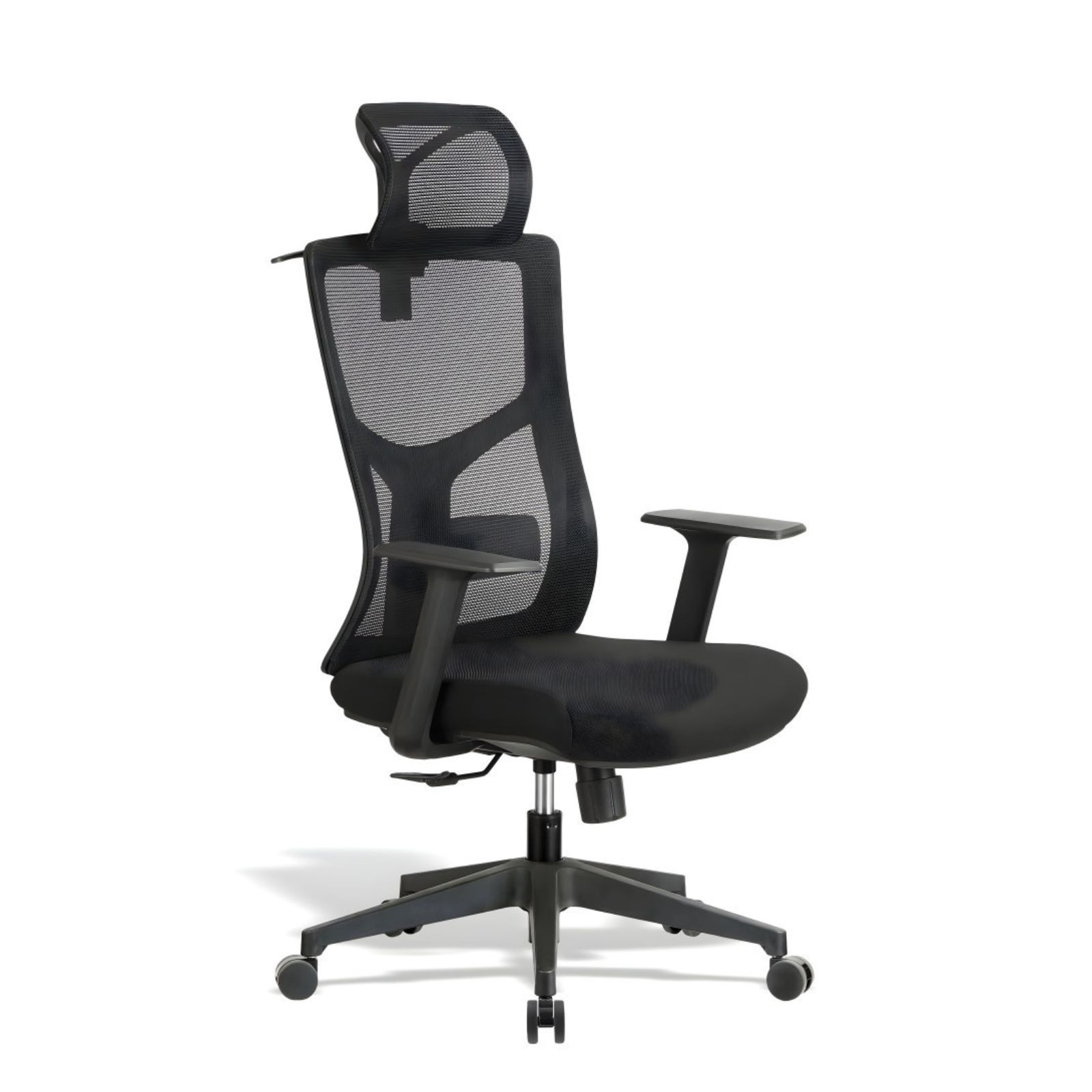 Stolička je vybavená výškovo nastaviteľnou opierkou hlavy a výškovo nastaviteľnými podrúčkami, čo umožňuje jej prispôsobenie rôznym typom postavy a individuálnym pracovným potrebám. Rám a podrúčky sú vyrobené z odolného polypropylénu (PP), ktorý zabezpečuje pevnosť a dlhú životnosť konštrukcie. Stabilitu zaručuje čierna päťramenná PP báza s priemerom 320 mm doplnená kolieskami s priemerom 50 mm vhodnými na bežné kancelárske povrchy. Nosnosť stoličky je až 150 kg.