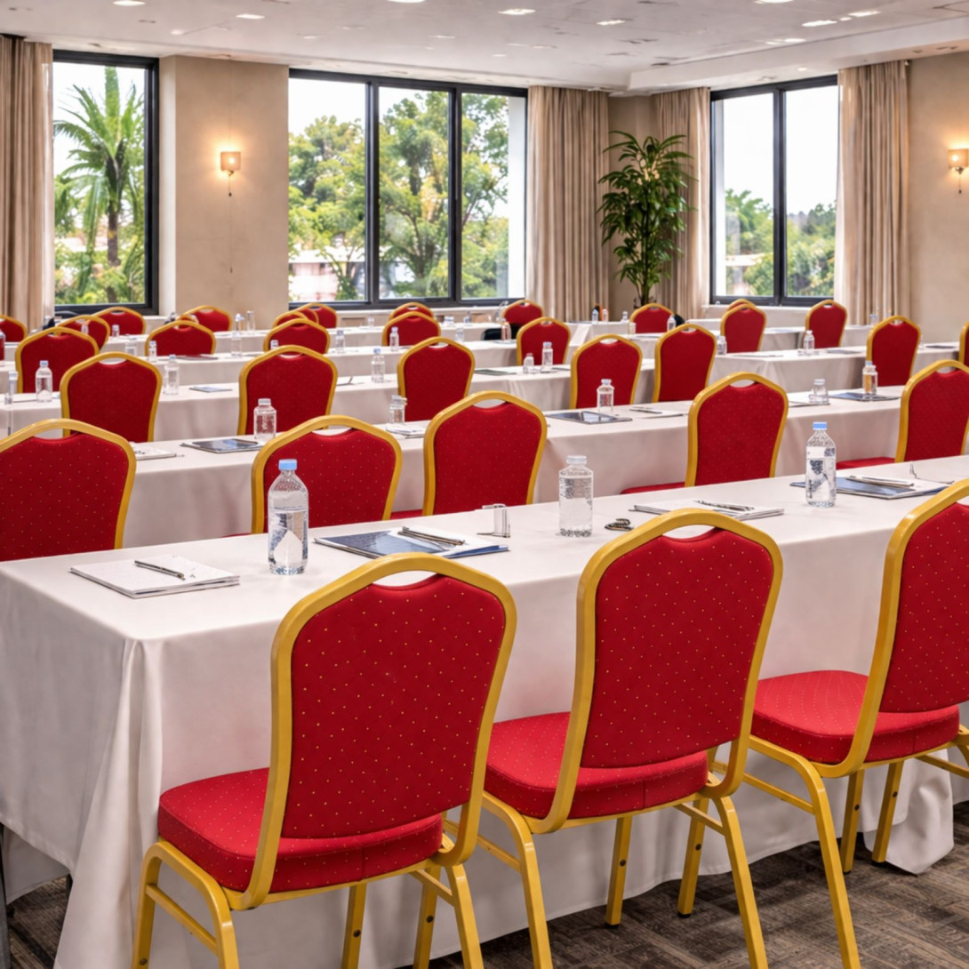 Základ stoličky tvorí silný oceľový rám z profilu 19 × 19 mm s hrúbkou 1 mm, ktorý je doplnený výstužným nosníkom pre vyššiu stabilitu a odolnosť pri každodennom používaní. Sedadlo je vybavené penovým polstrovaním s výškou 5,5 cm, ktoré zabezpečuje pohodlné sedenie aj počas dlhších podujatí.