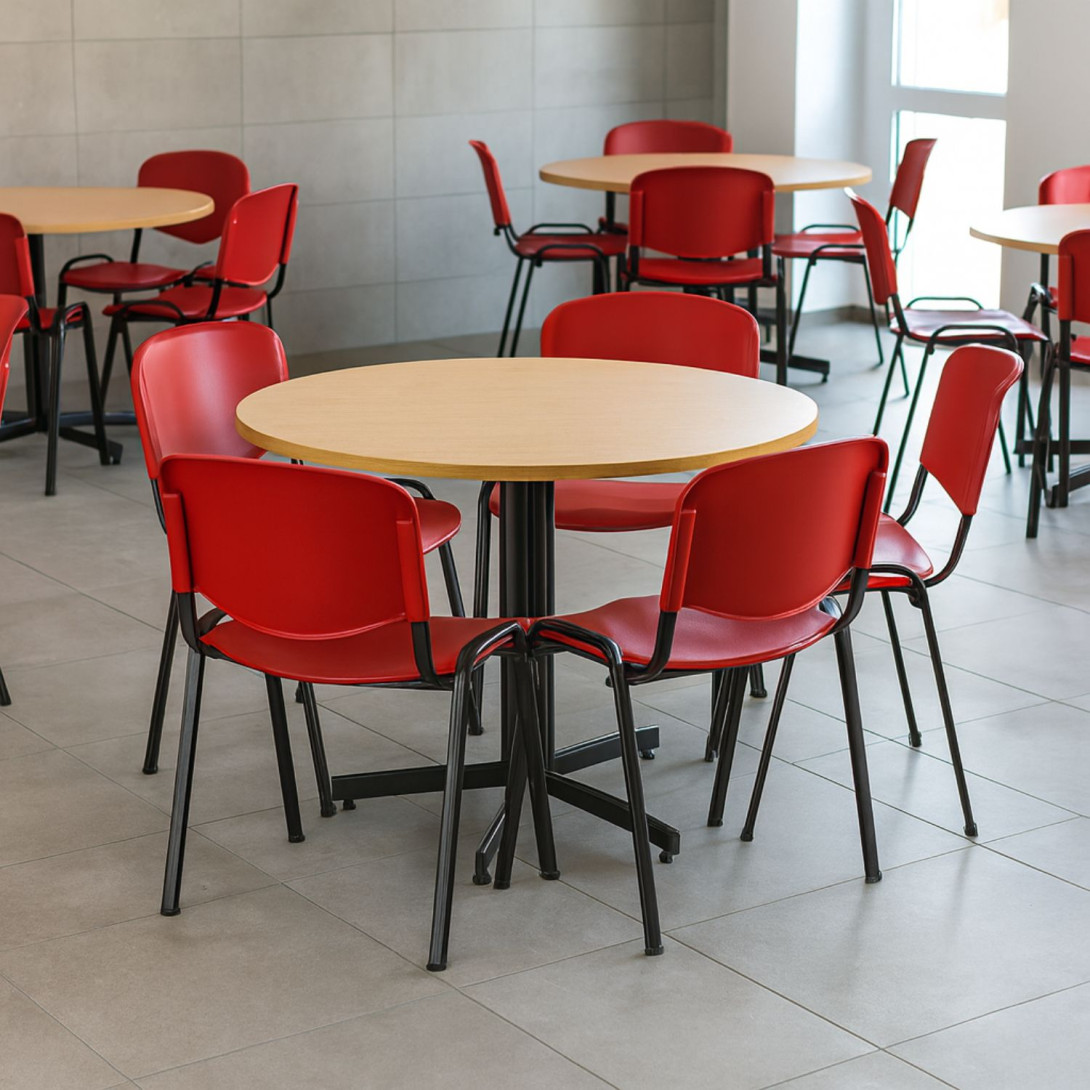 Okrúhly jedálenský stôl s priemerom 110 cm a pevnou laminovanou doskou predstavuje praktické a vizuálne atraktívne riešenie pre každodenné používanie. Laminovaný povrch je odolný voči poškriabaniu, teplu aj vlhkosti, vďaka čomu je stôl ideálny do firemných a školských jedální, kuchýň či domácností s intenzívnou prevádzkou. Zároveň sa veľmi jednoducho udržiava a čistí.