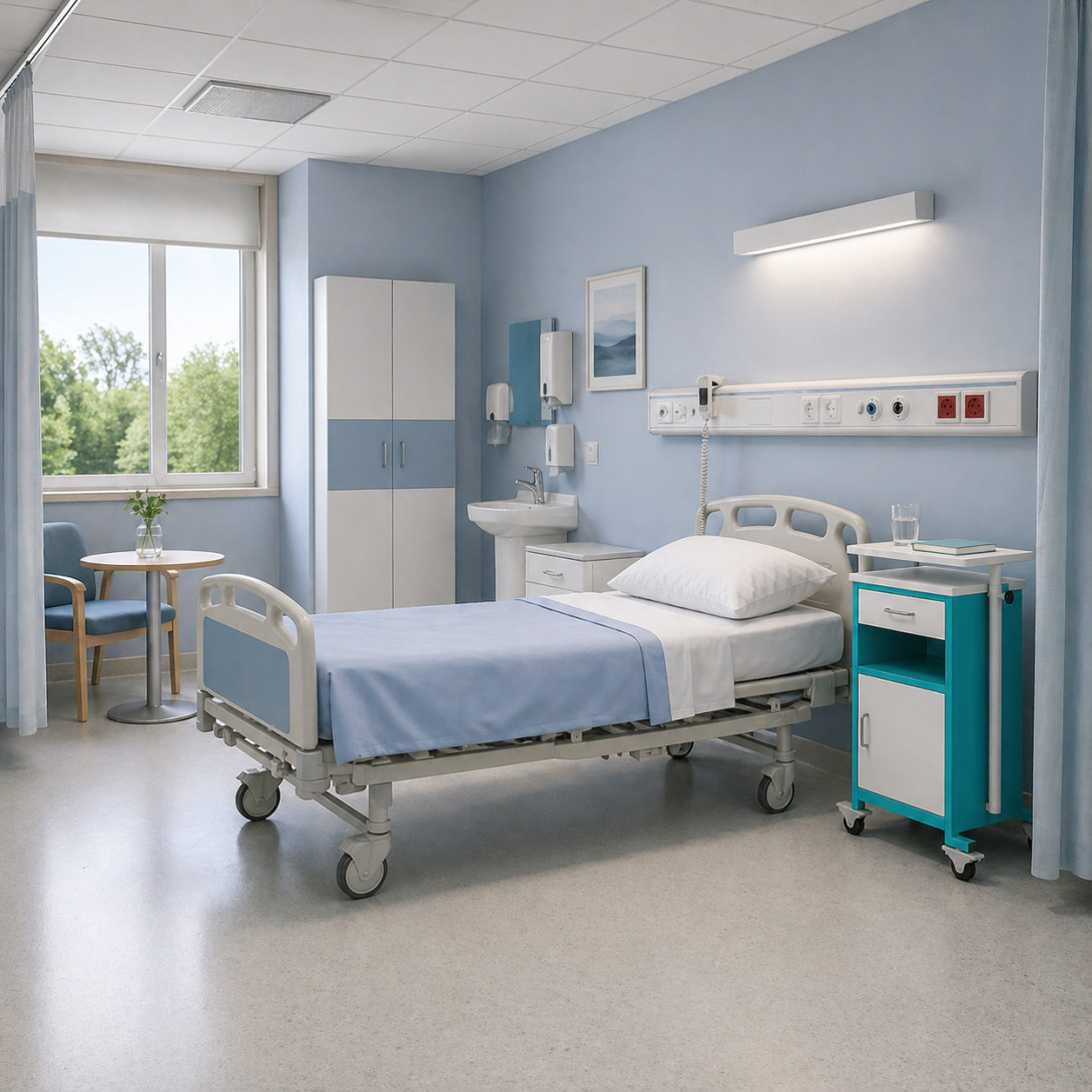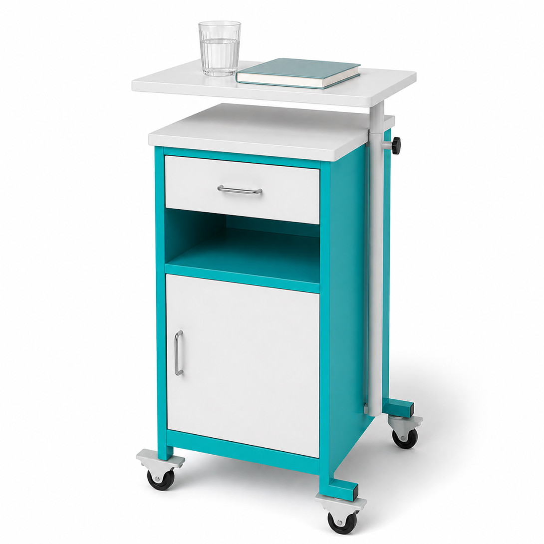 Nemocničný nočný stolík s otočnou jedálenskou doskou predstavuje praktické riešenie pre zdravotnícke zariadenia, kde je dôležitý komfort pacienta aj efektívna manipulácia personálu. Vďaka premyslenej konštrukcii umožňuje jednoduché používanie priamo pri lôžku.