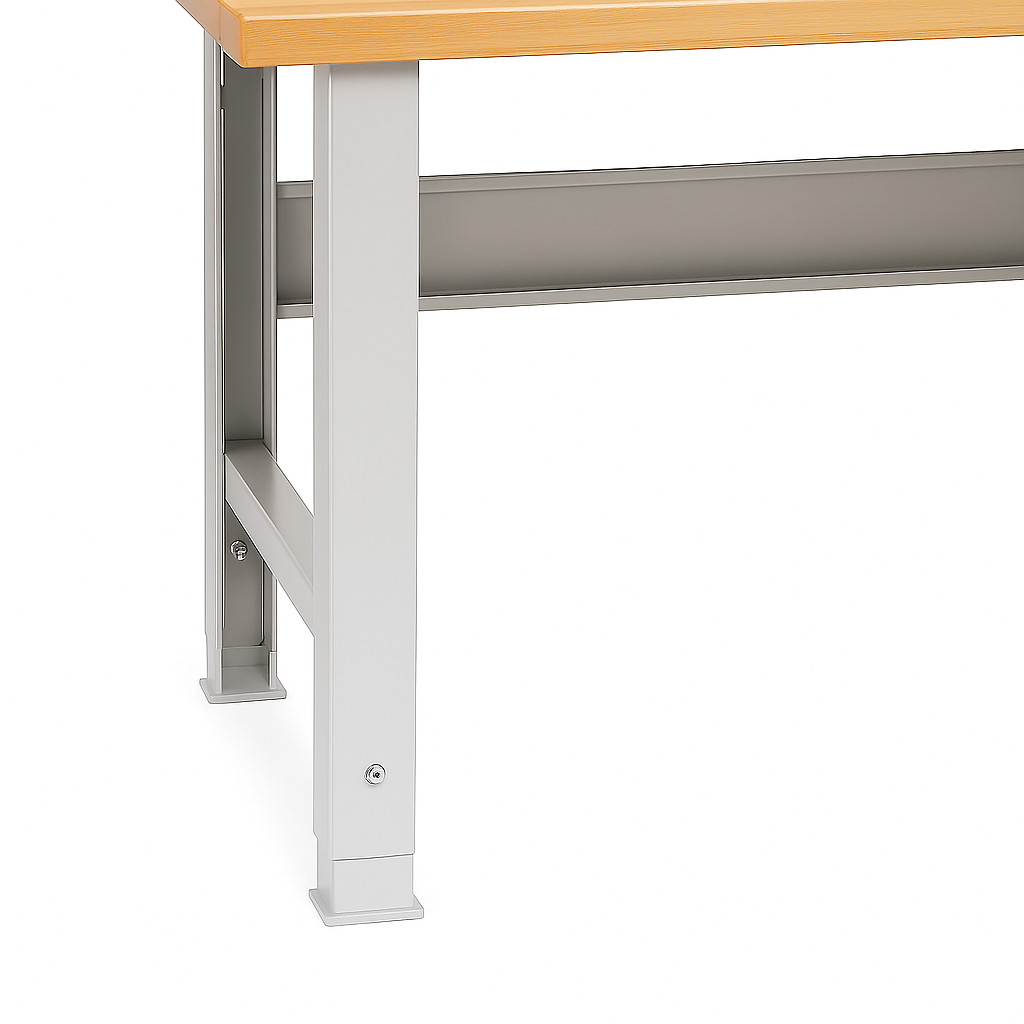 Pracovný stôl MODULBENCH GE 2000 D3C1 je spoľahlivý a odolný pomocník pre dielne, výrobné prevádzky a údržbárske pracoviská. Masívna buková doska s dĺžkou 2000 mm a hrúbkou 40 mm spolu s pevnou oceľovou konštrukciou zvládnu zaťaženie až 500 kg, čo zaručuje stabilitu aj pri náročnom používaní.