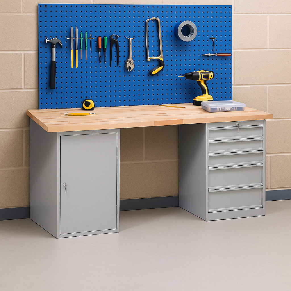 Tento pracovný stôl spoľahlivo spája pevnosť, funkčnosť a prehľadnosť – skvelá voľba pre remeselníkov, technikov aj údržbárov.