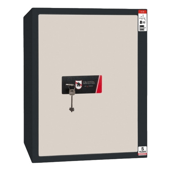 Korpus trezora je vyrobený z oceľového plechu I. triedy, čo zabezpečuje pevnosť, stabilitu a odolnosť voči mechanickému poškodeniu. Povrch je ošetrený práškovým lakom v kombinácii farieb RAL 7040 (šedá okenná) a RAL 7035 (svetlo šedá), vďaka čomu pôsobí elegantne, moderne a profesionálne. Vnútorný objem je 60 l.