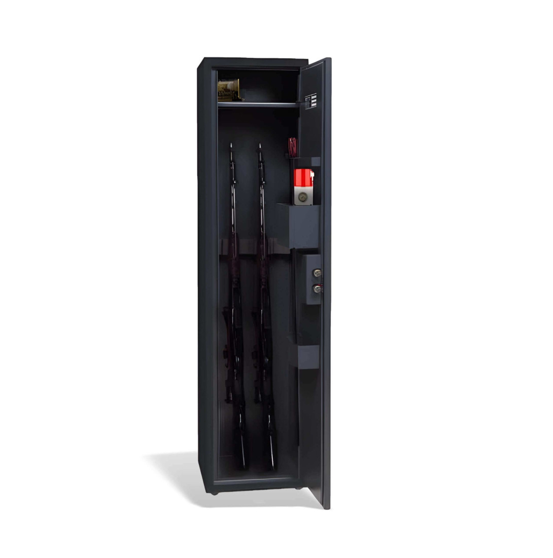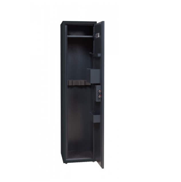 Skriňa umožňuje bezpečné uloženie až 3 kusov zbraní s maximálnou dĺžkou 1060 mm. Vo vnútri sa nachádza praktická polica s plnou hĺbkou a úložný systém na dverách, ktorý zahŕňa držiaky na strelivo, dokumenty, balistol, ďalekohľad či iné doplnky. Spodná časť skrine je vybavená špongiovou vložkou, ktorá chráni zbrane pred skĺznutím a poškodením.