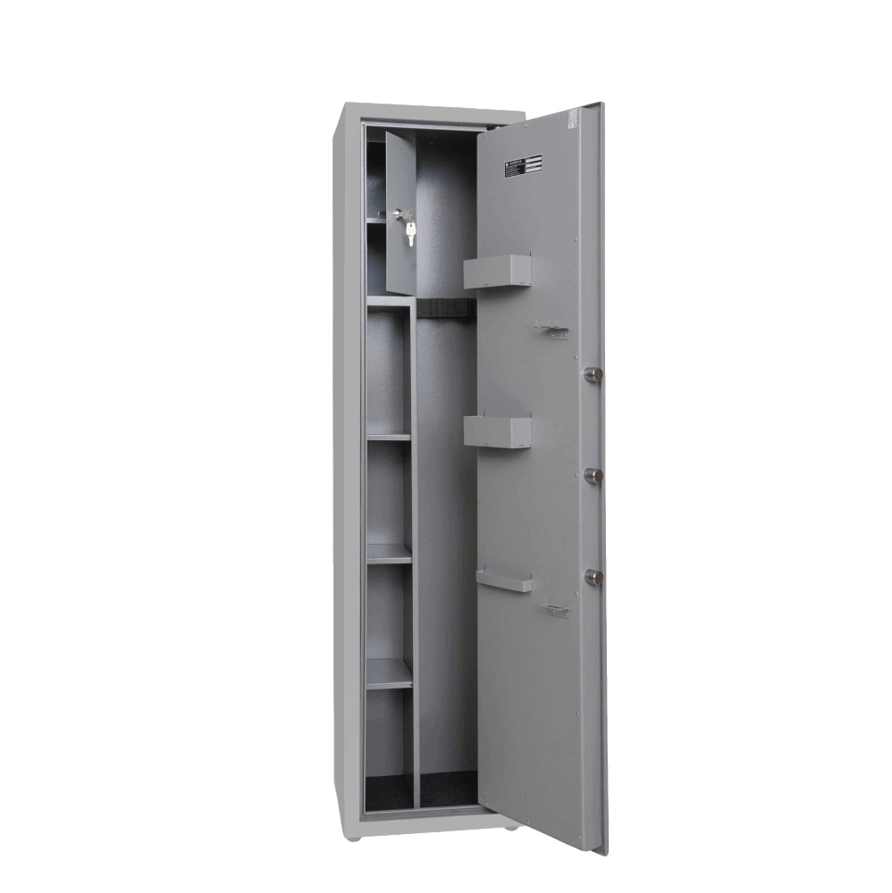 Elegantné prevedenie v odtieni RAL 7040 – sivá zaručuje moderný vzhľad, ktorý zapadne do každého interiéru. Rozmery modelu sú 1412 × 350 × 300 mm, čo poskytuje dostatok priestoru pre zbrane aj doplnky.